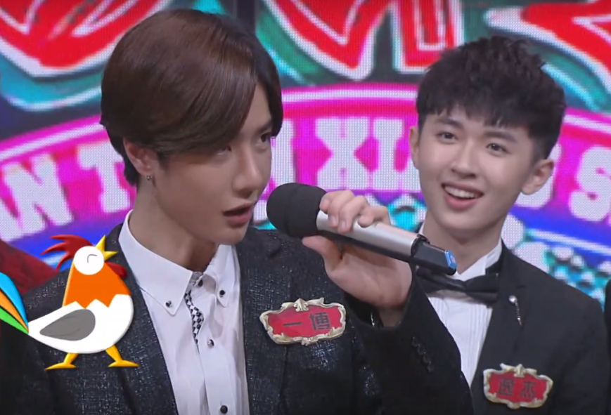 当时王一博出场表演个人才艺,却出人意料地来了段模仿乌鸦叫和公鸡打鸣,站在他身后的张逸杰明显被这不同寻常的才艺给惊到了。