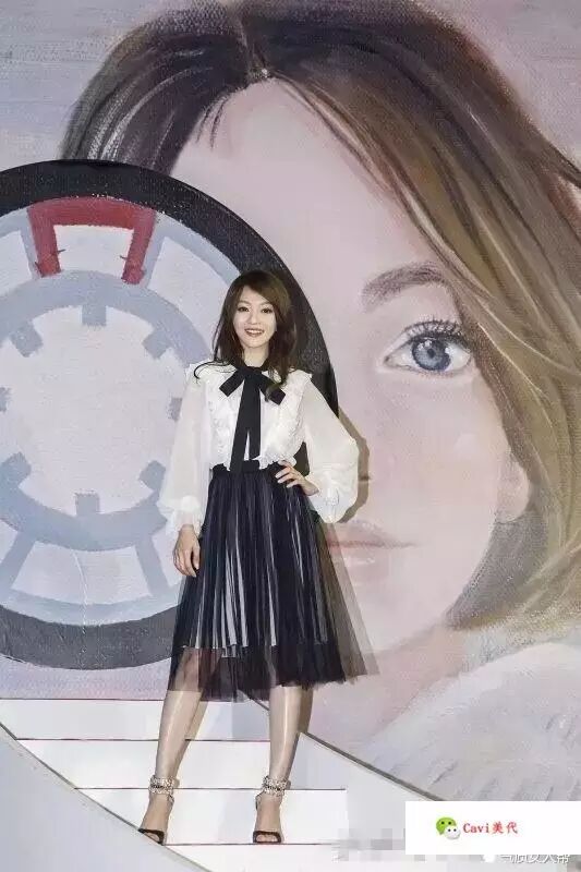 瞧这一身,谁能看出已经34岁了?不管是蝴蝶结装饰还是黑色微微透视的雪纺裙,都充满了青春气息。