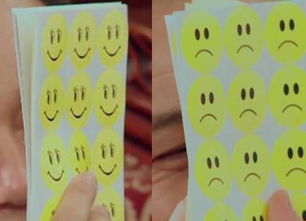 然而,接下来的场景就尴尬了,为了分出声部,兰天洋老师让鲜肉们排排坐好,挨个唱歌来听,还准备了笑脸和苦脸两种萌萌哒贴纸,用以区分鲜肉的表现。