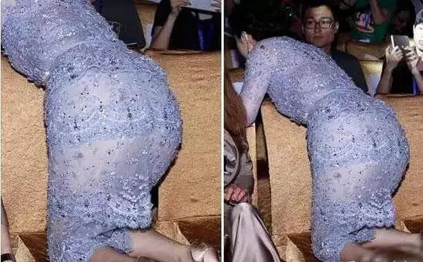 ►喜欢穿蕾丝的范冰冰,过紧的蕾丝显得手臂十分粗犷,而且臀部的放大显得极丑无比