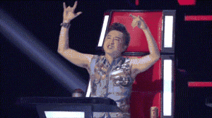 一边激动地龇牙咧嘴的音乐导师