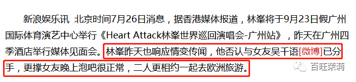 这不,折腾了这么久,林峯也在前天承认和相恋五年多的吴千语分手↓
