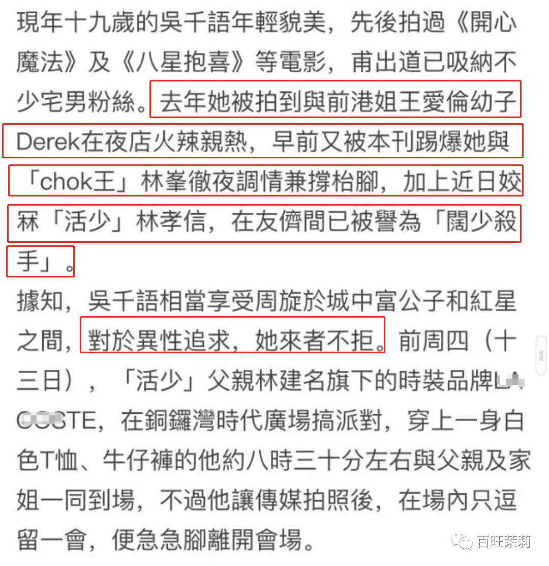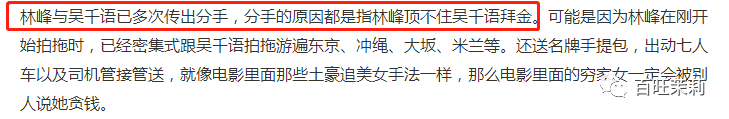 8管是林峯的铁杆粉丝,还是富豪林爸爸,甚至是吃瓜群众都认为吴千语和林峯在一起都是为了钱,“拜金女”成了她的标签↓