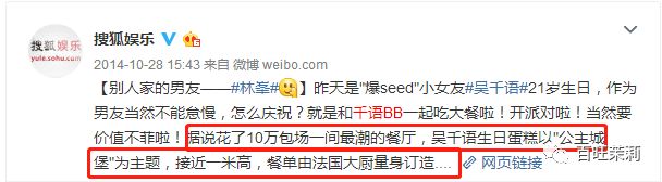 14年为了给吴千语过生日,林峯还包场开party↓