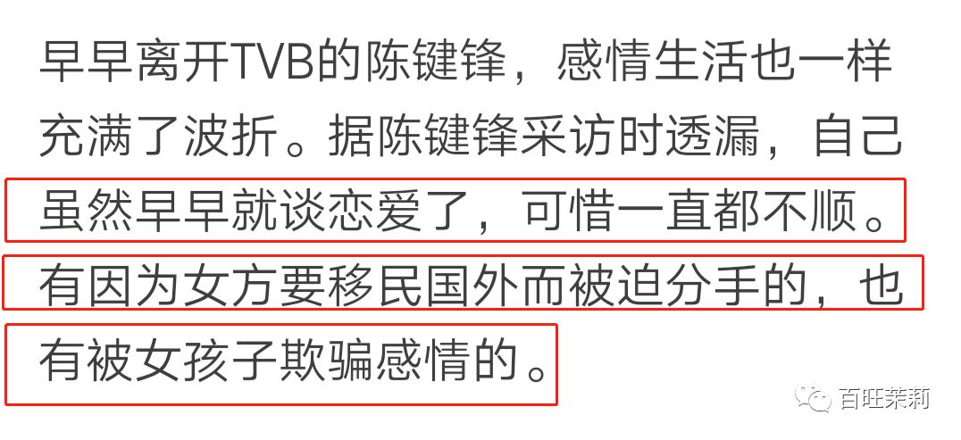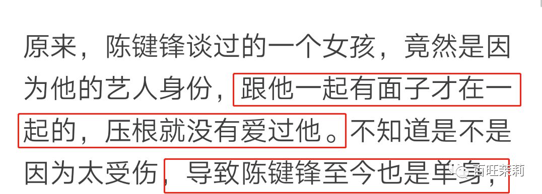 而陈键锋嘞,感情生活更是一波三折,至今都还单身