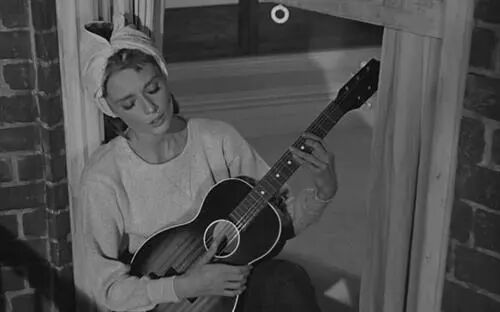 《蒂凡尼的早餐》里,奥黛丽·赫本坐在公寓外面的火灾逃生梯旁边,抱着吉他低吟浅唱,唱词中的“moon river”也像是树洞一样,承载着她的烦忧和愿望。