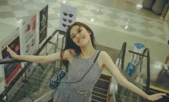 倪妮格纹背心裙搭配黑白撞色球鞋,打造小清新少女范儿。