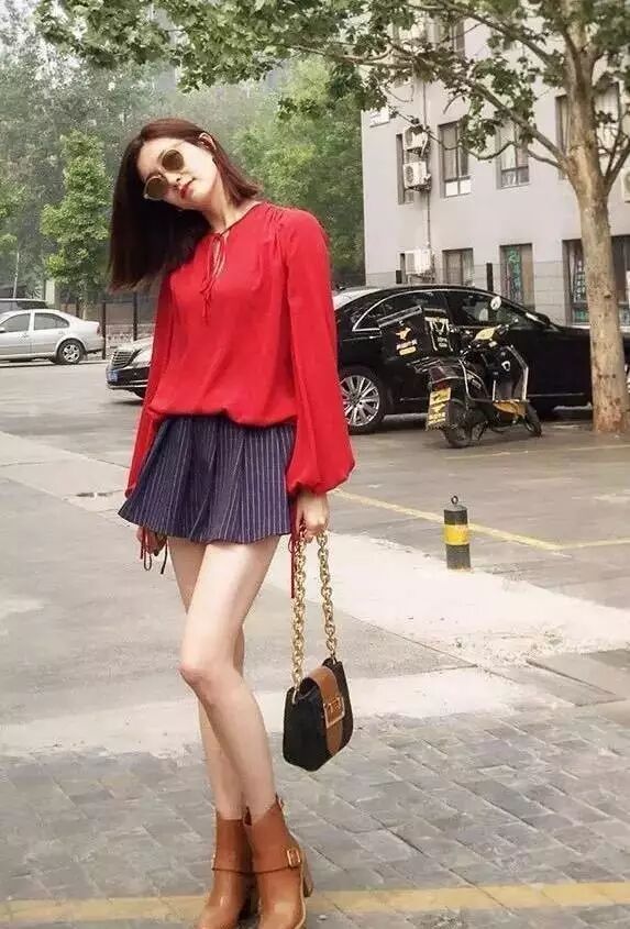 红色雪纺上衣配条纹短裙秀出长腿,江疏影这身私服够打眼,链条包是最近蛮热的搭扣包,有方版也有竖版滴!