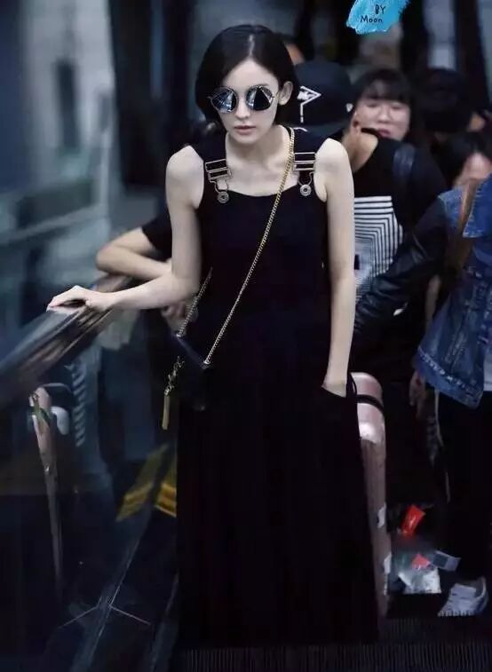 All Black与墨镜一直都是扮酷好搭档,薄纱长裙的轻盈感十足,打破黑色的沉闷气氛,最近街拍几乎都是小白鞋的娜扎这次也不例外的穿上了,意外的是没有与黑裙相搭显得突兀,倒是增添几分安逸感,加上链条包,简单时髦。