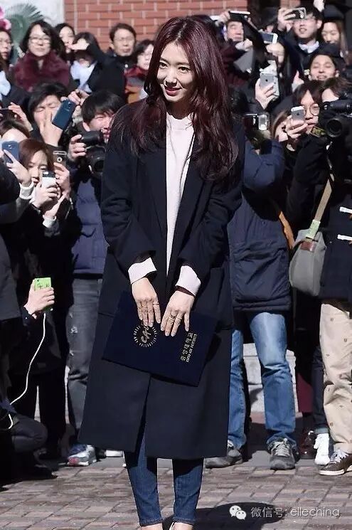 ▲ 2月,她回到母校首尔中央艺术大学参加毕业典礼,欧尼小施“心机”,选择了一件黑色的风衣,但是风衣被吹开时,她的小粗腿还是“调皮”地露出来了,但整体已经显得修长很多,瘦身效果初现呢~