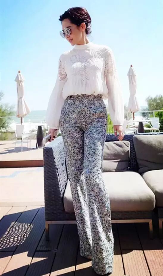 印花阔腿裤也是洋气的不得了