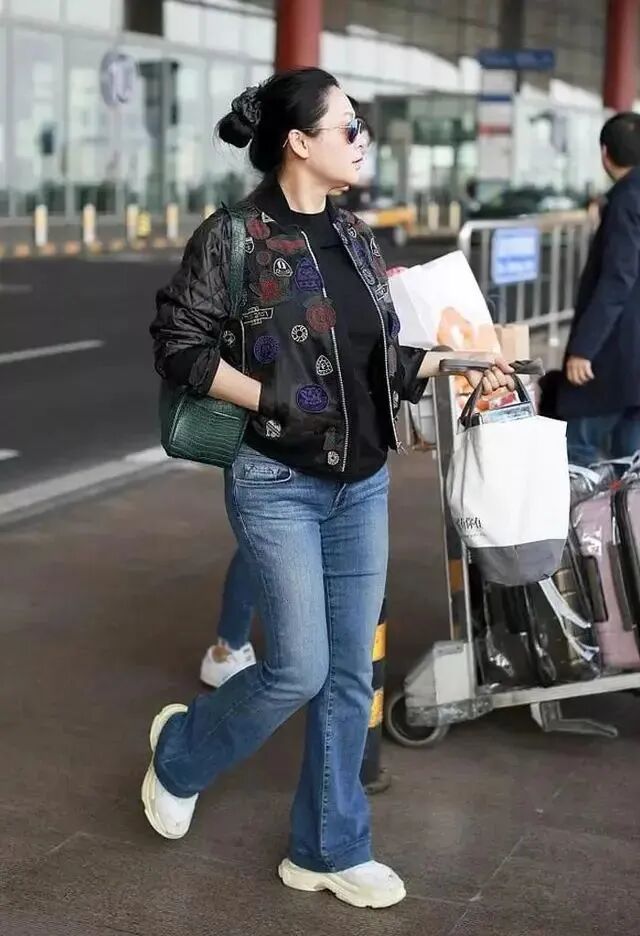 倒是这普通的衣服穿在身上反而会让人觉得更加的自然了。一件短款的夹克衫外套看起来特别朴素,配的是那种浅色的牛仔裤。这样穿的确实是很路人,也没有刻意打扮自己,但是比扮嫩舒服。