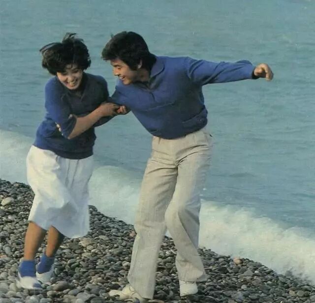 山口百惠曾说过,她非常喜欢大海,而且还希望住在海边,海边,坐在海边的他会非常的沉静和平静,而如在照片上,喜欢海的山口百惠和她最爱的人就,站在他的身旁,怎么能不开心不开怀大笑呢!山口百惠,比三浦友和小七岁,是在他15岁那一年相识的两个人似乎是命中注定,兜兜转转,要搭档的那个人,总是三浦友和。