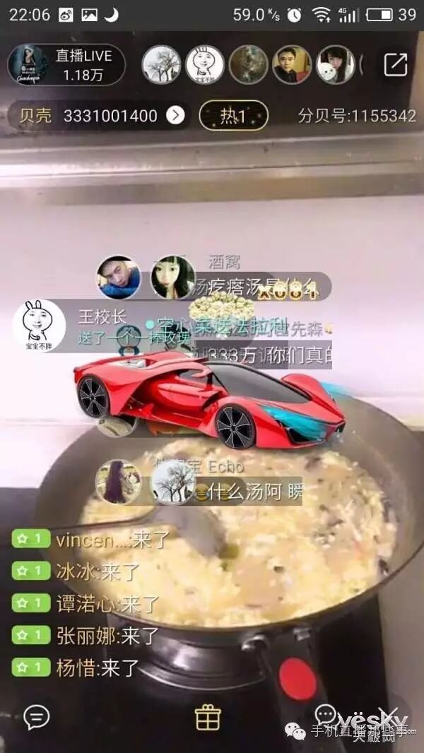 (这究竟是做一碗疙瘩汤给观众看还是请观众来家里喝,你懂的),顿时引爆了两位土豪观众的礼物狂潮。十多分钟之后,一位ID为王校长的网友进入直播间一口气连刷了数十组最高价值的礼物。