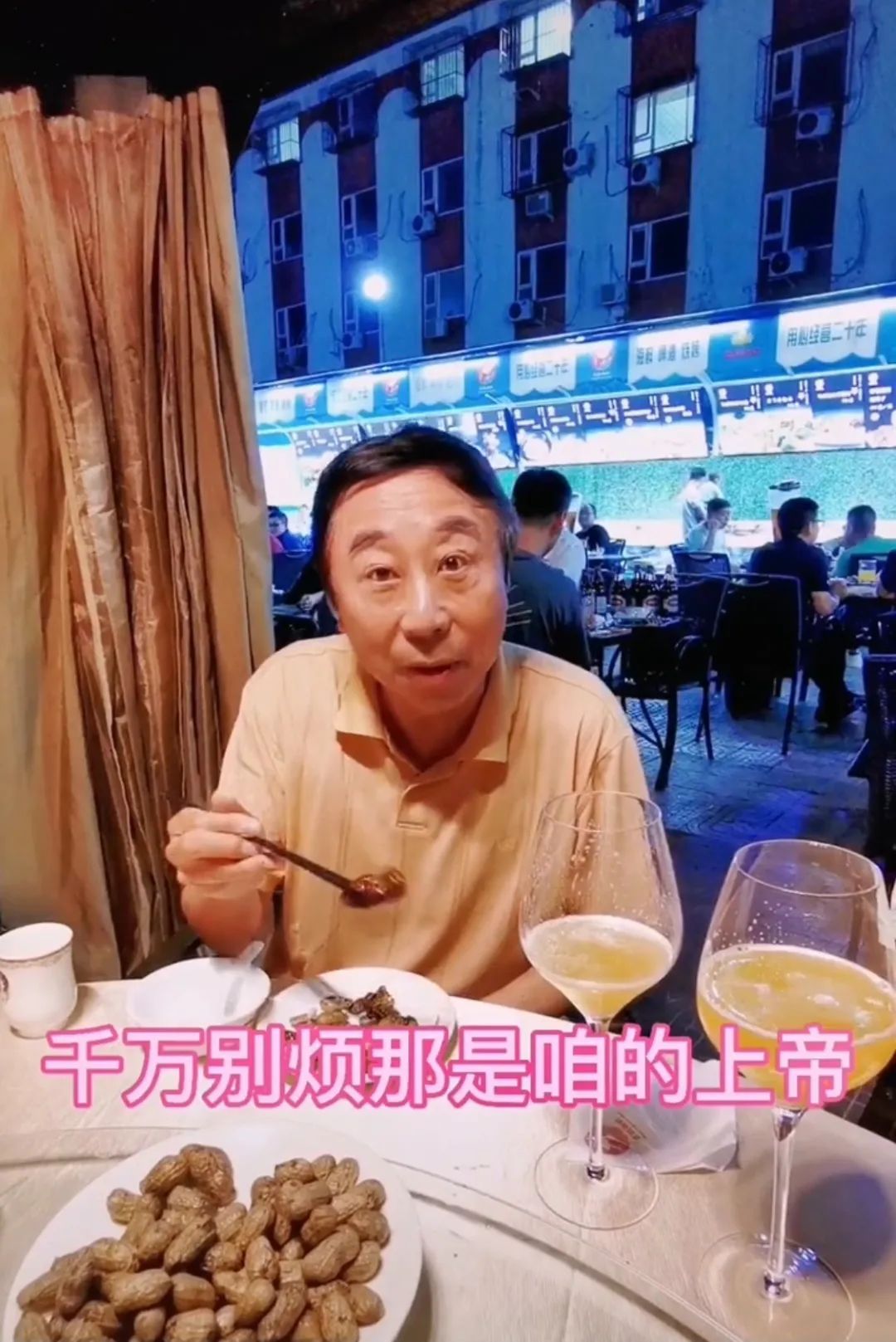 视频中已经64岁的他,依旧是记忆中的模样,穿着简单低调,和朋友在一家路边摊吃饭。