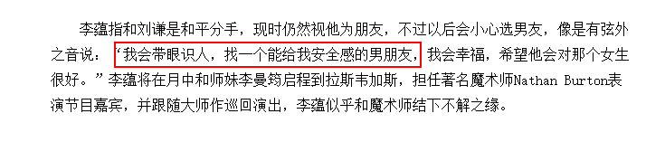可是热恋过后,有传闻两人因为聚少离多及被双方粉丝反对而感情降温,这段恋情维持不到1年两人就和平分手,分手后李蕴称:“以后会找一个能给我安全感的男朋友”。