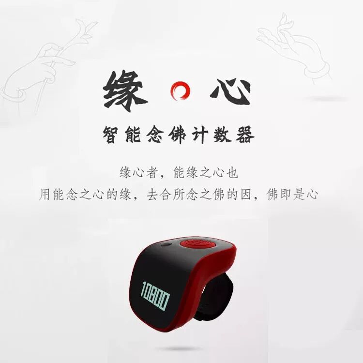 目前,缘渡最新研发的智能念佛计数器【缘心】正在热卖中,除了具备传统计数器小巧便携的优点外,它更全面的满足了佛弟子日常修行中记录功课的需求,无需下载APP,大家只需专注念佛,计数就交给它了~