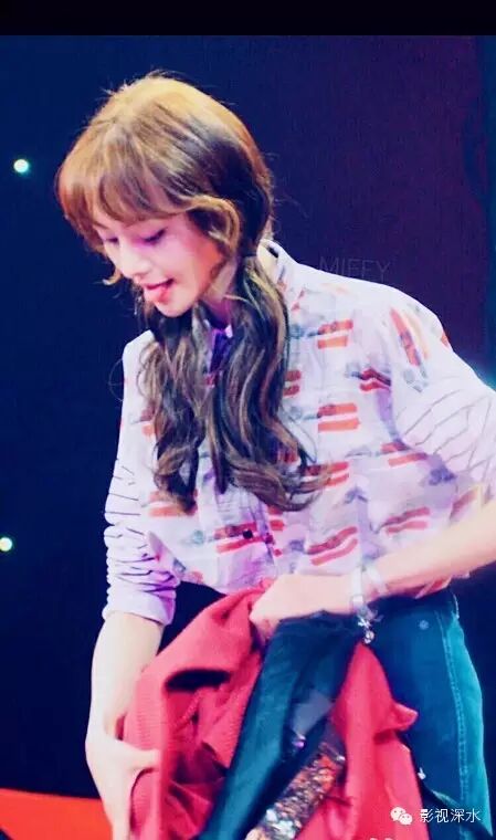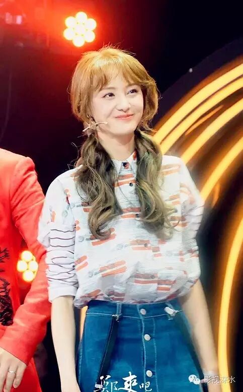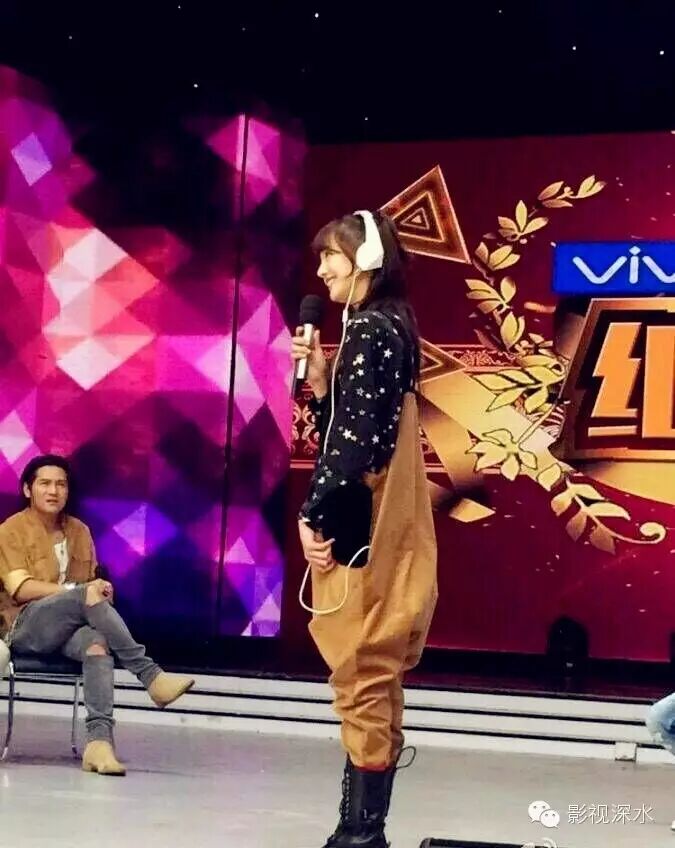 从快乐大本营录制的内场照看出,爽妹子状态还是相当不错的,穿着一身可爱的吊带裤萌萌哒。