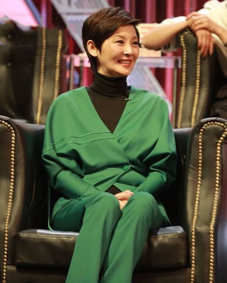 徐帆的一身纯绿色西装配着黑色内搭还是很显优雅的。而且高领毛衣一看就是相当保暖,不过坐下来的时候还是能看得出小腹突出,简直有三层肉的即视感了,而且笑起来眼尾皱纹也是很暴露,真实怎么看都有种沧桑的感觉了呀。