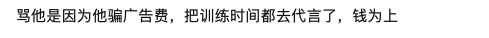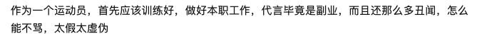 有人说:“骂他是因为他骗广告费,把训练时间都拿去代言了。”