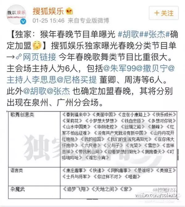 离猴年央视春晚就剩10多天啦!春晚节目单终于曝光啦!