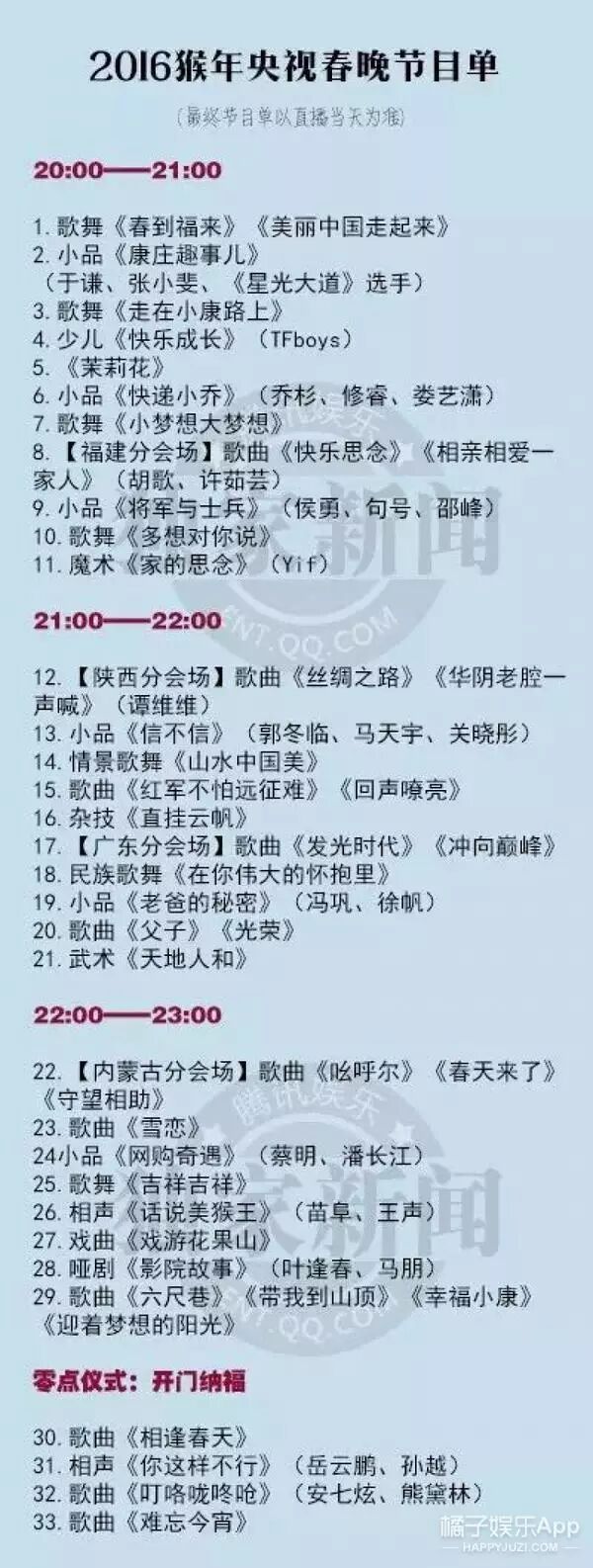 看过了节目单!今年你们会守着电视看春晚吗?期待哪个节目!快来吐槽!