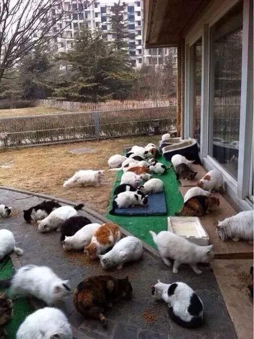 刘亦菲经常收养流浪动物,在今年6月份,有网友曝光数十只猫生活在刘亦菲家后院,最多时候甚至有五六十只,堪称真人版的《猫咪后院》。