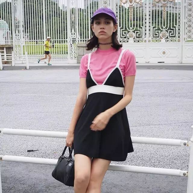 穿个吊带裙照样能hold住清新甜美