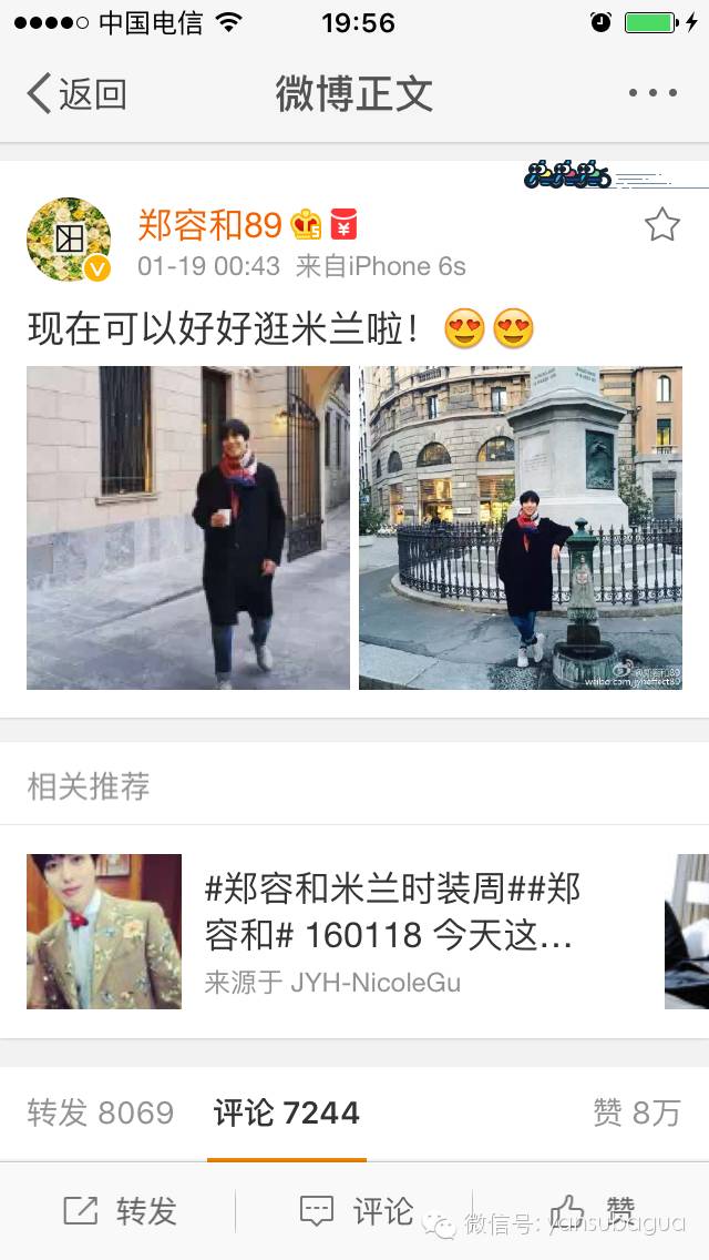 比如郑容和一出秀场就换掉衣服开心地发了微博……