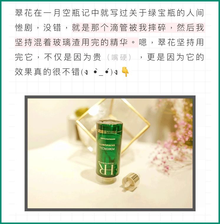 例如大名鼎鼎的赫莲娜绿宝瓶精华