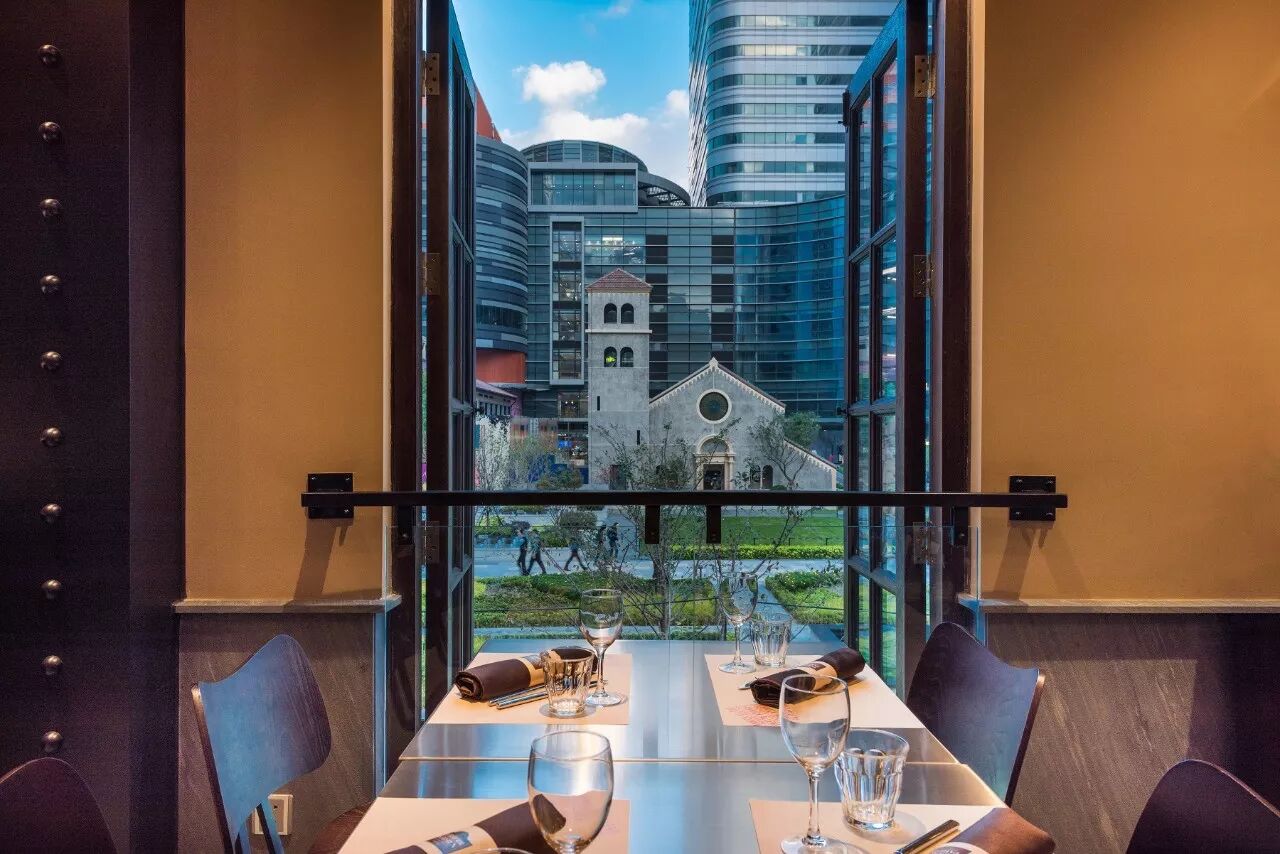 ▲推门入内,直上二楼,靠窗的位置视角绝佳,对面就是复刻后的女校教堂,如今被改建成了一个小型礼堂。阳光顺着窗户的玻璃照在餐桌上,配上室内恰到好处不明不暗的灯光,轻松又惬意。