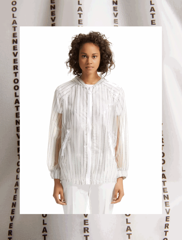 运动时还可以搭配SPORTMAX独特的采用透明技术剪裁而成的无袖上衣,朦胧中展现身体的本色,既充满性感魅力又极具现代的运动美感。