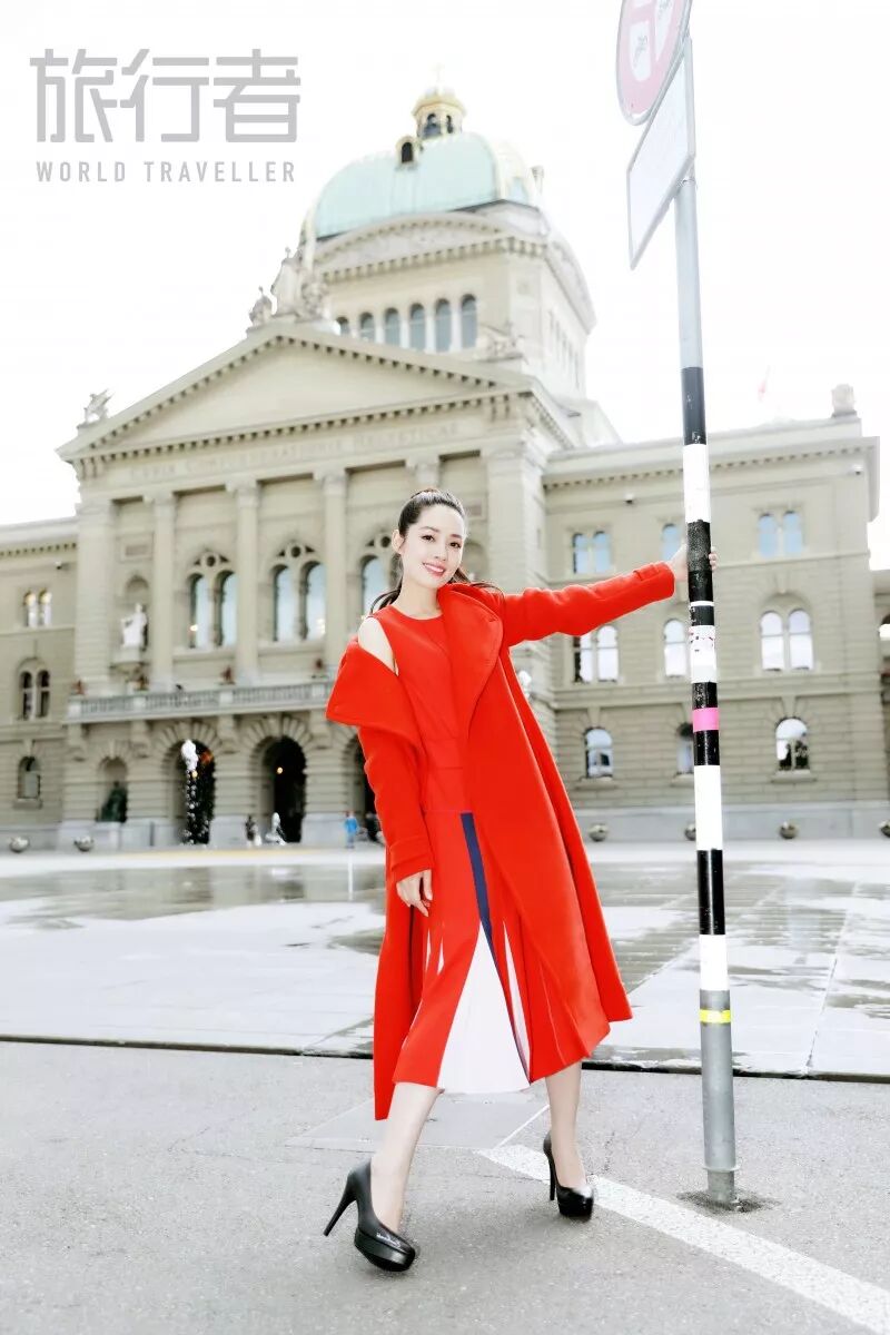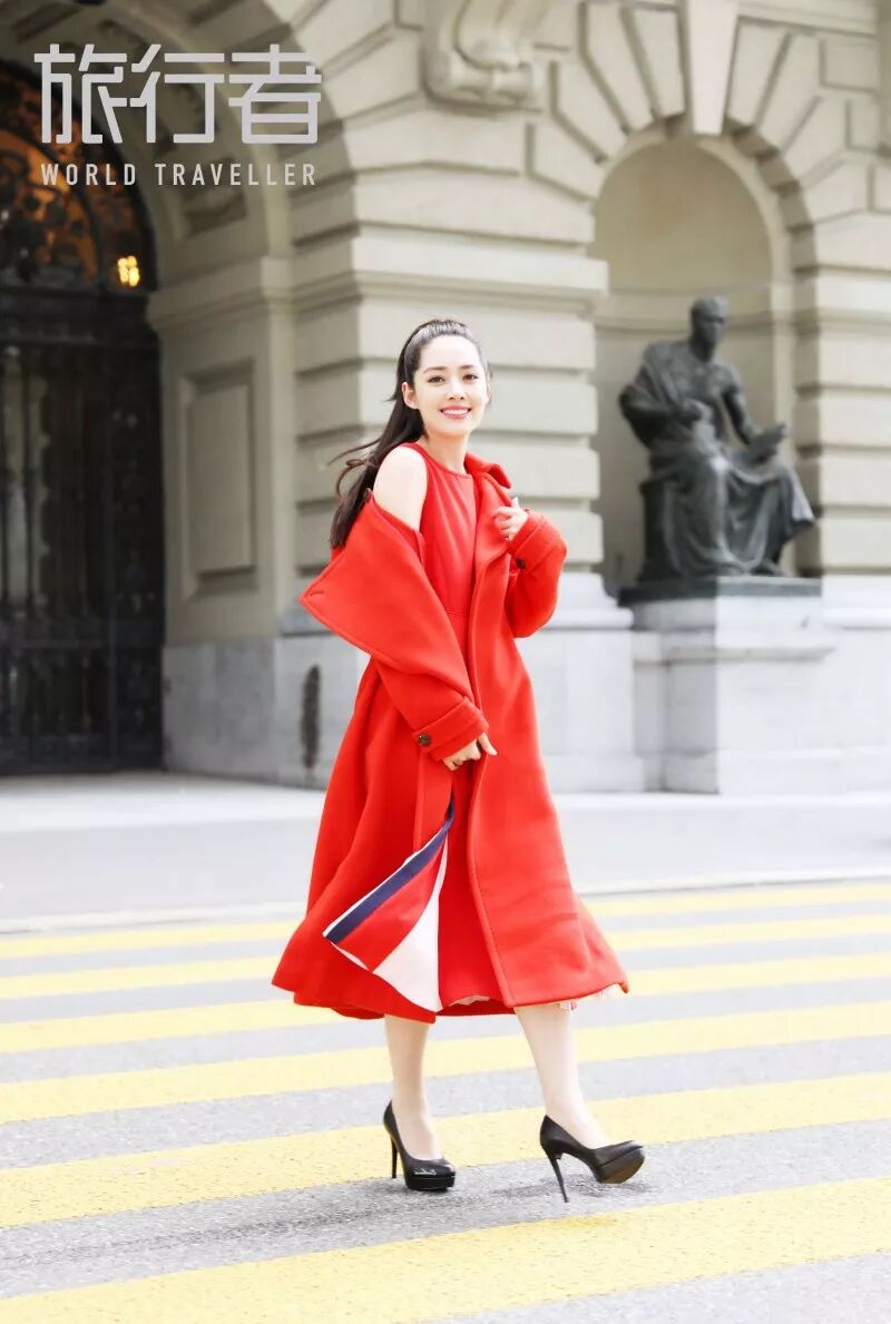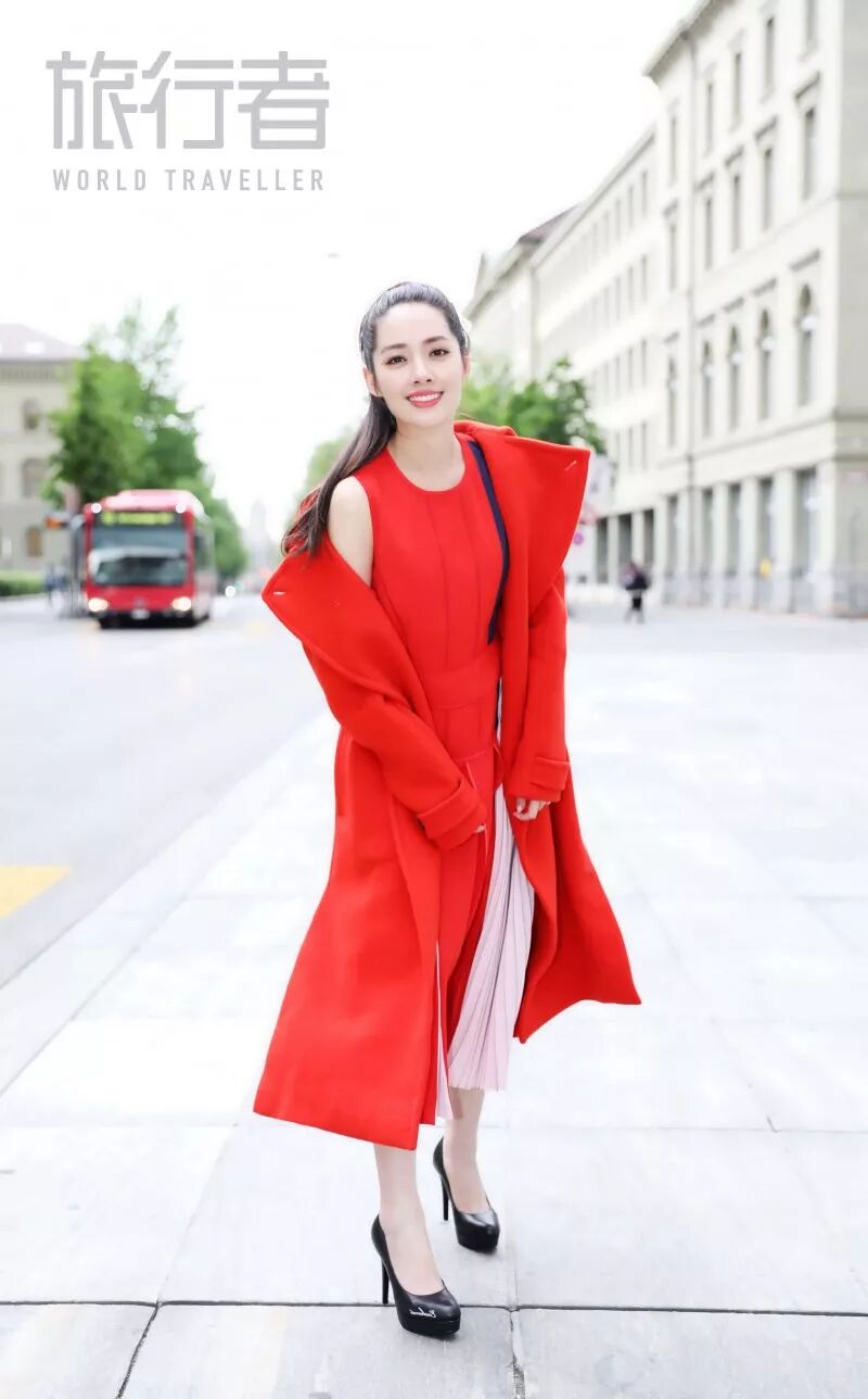 一袭鲜艳的红衣搭配气场全开的黑色细跟高跟鞋,微微掀开的衣角露出一丝跳脱的蓝色,红蓝的碰撞显露出她的性感和灵动,两种截然不同的气质却在她身上完美融合。