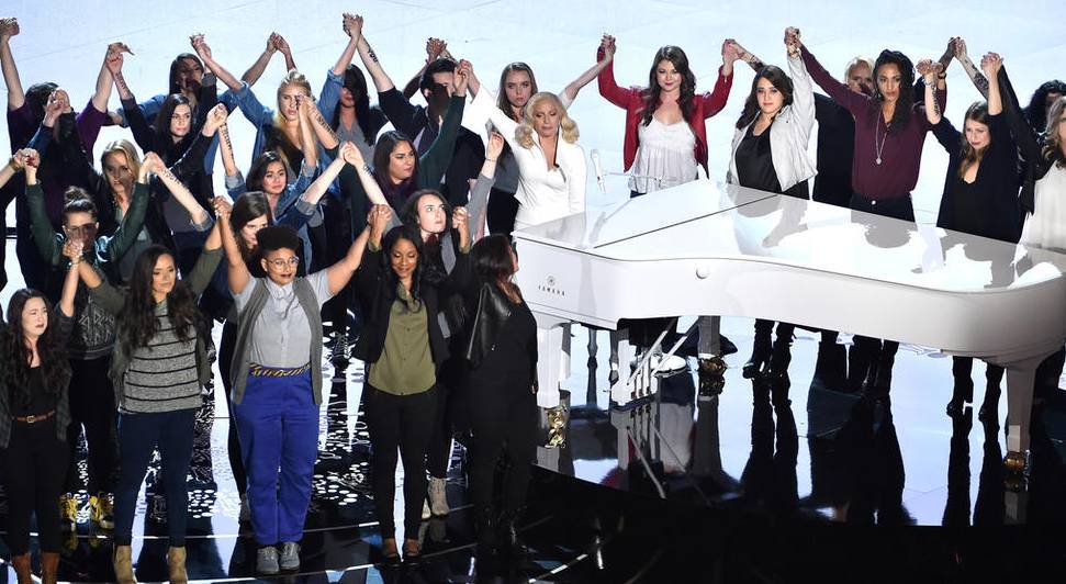 除了小李子,Gaga也是惊艳了一把,红毯上优雅复古,颁奖礼上献唱《Til It Happens To You》也让人动容,表演结束的时候,全场为之欢呼鼓掌。