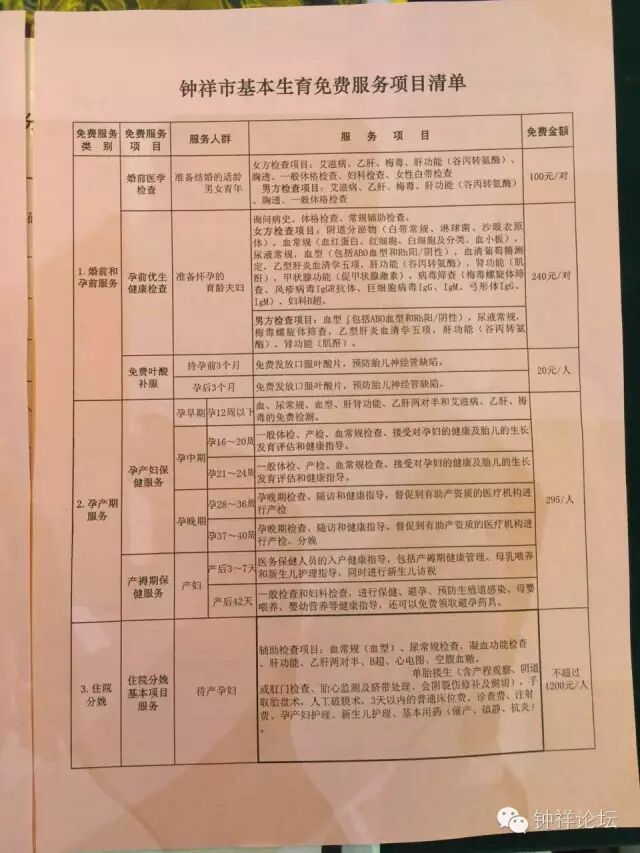 户籍在钟祥、符合基本生育服务免费的产妇,