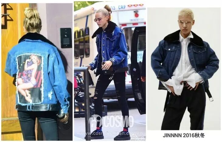 连老佛爷最爱的国际超模Cara Delevingne,前段时间也穿上了Jinnnn家深蓝色毛领牛仔夹克出现在纽约街头,可见它的国际影响力。