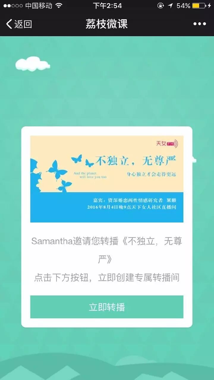 收到链接后点“立即转播”