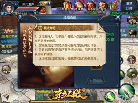才子云集的洛阳城,在游戏里会定期进行答题活动,内容丰富包罗万象,满腹经纶的你怎么能不来试试?答对之后还会有丰厚的经验奖励,经验加成buff让你轻轻松松突飞猛进,这么明目张胆秀才华的机会怎能错过。