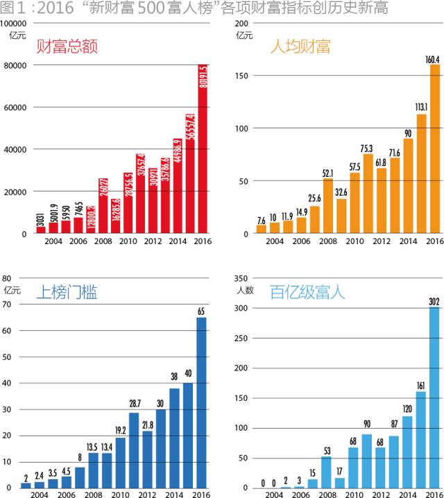 今天(5月4日)发布的2016年新财富500富人榜,呈现了一个出人意料的结果:过去一年,中国最富有的500个人的上榜门槛,从40亿元提高到了65亿元,增长62.5%。500富人拥有的财富总额达到了80191.5亿元,人均财富达到160.4亿元,较上年的113.1亿元增长41.8%,远高于上一年25.7%的增速。