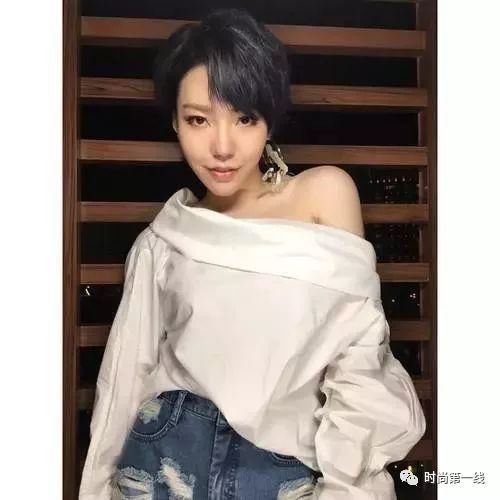 白色的单边露肩上衣+破洞牛仔短裤,性感的锁骨和大美腿尽显,标准的网红脸,个性十足的耳饰,简单随性又不失性感!