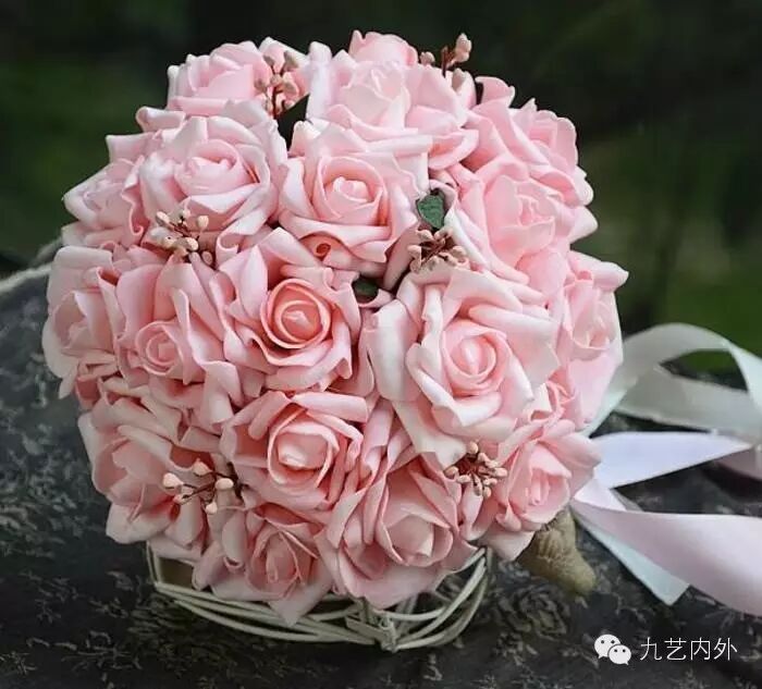 这周我们体验课的手捧花的原型是风靡整个中国的刘诗诗婚礼的手捧花,采用的花材是27朵玫瑰,寓意爱妻,并将教授圆形手捧花的花艺方式,寓意幸福圆满。