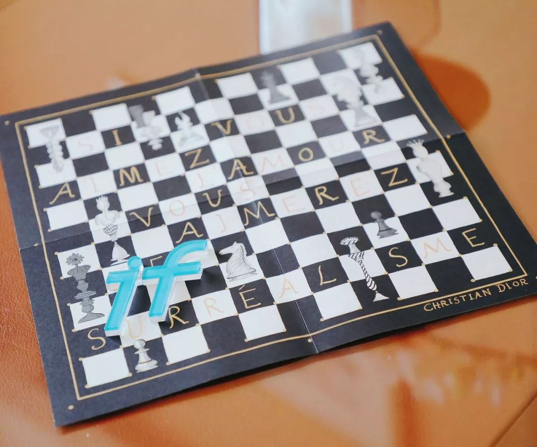 打开邀请函之后,姐发现,它的背面被设计成了一张小小的国际象棋棋盘。▼