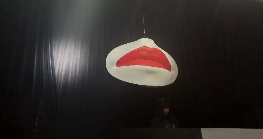 对,它就是秀场里白色的嘴唇雕塑。只不过为了入乡随俗,它进到这里之后就变成了烈焰红唇。▼