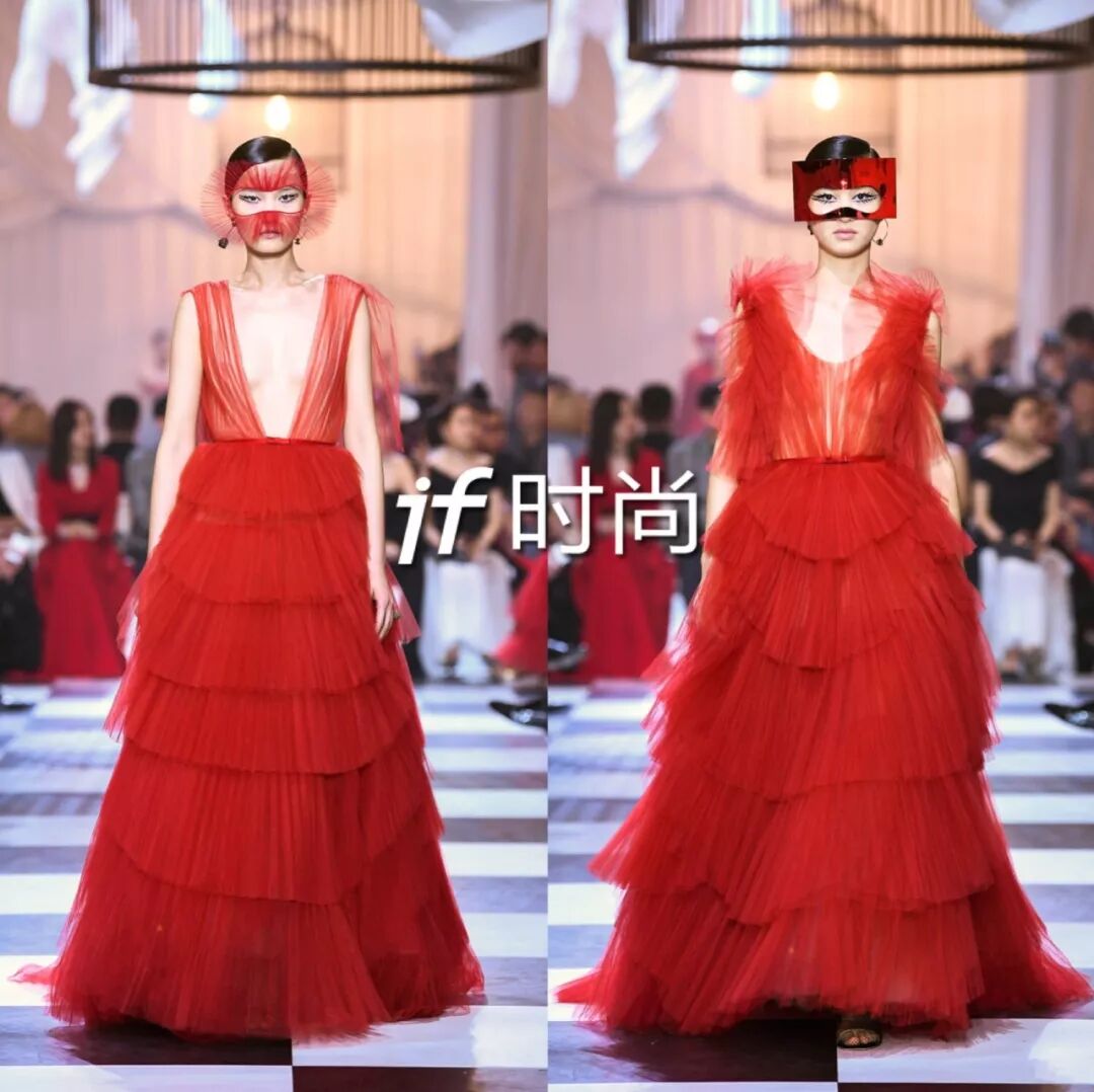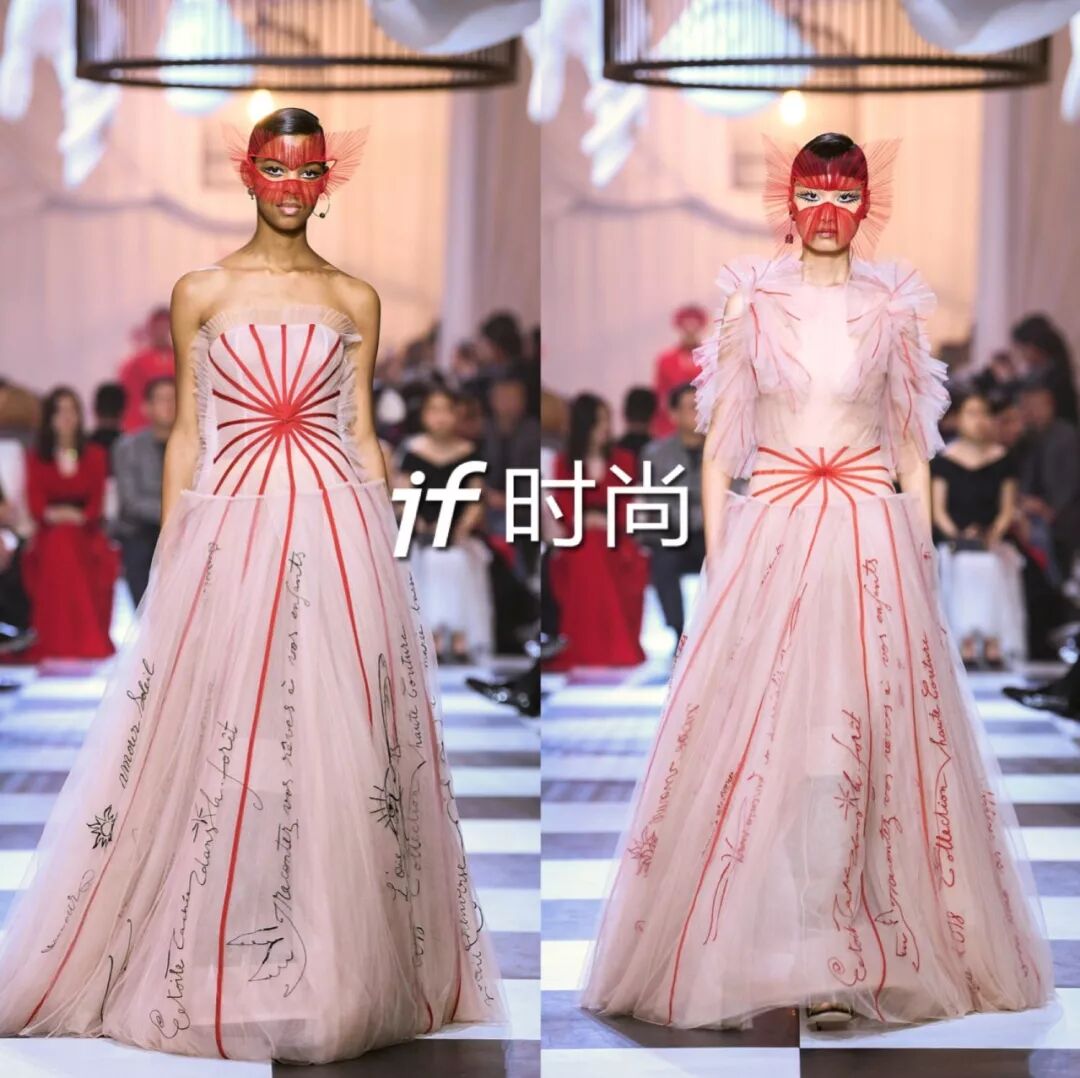 除了“胶囊系列”之外,Dior 此次还以“中国红”和扇子造型为灵感,为这次的上海大秀设计了十二款特别的造型。