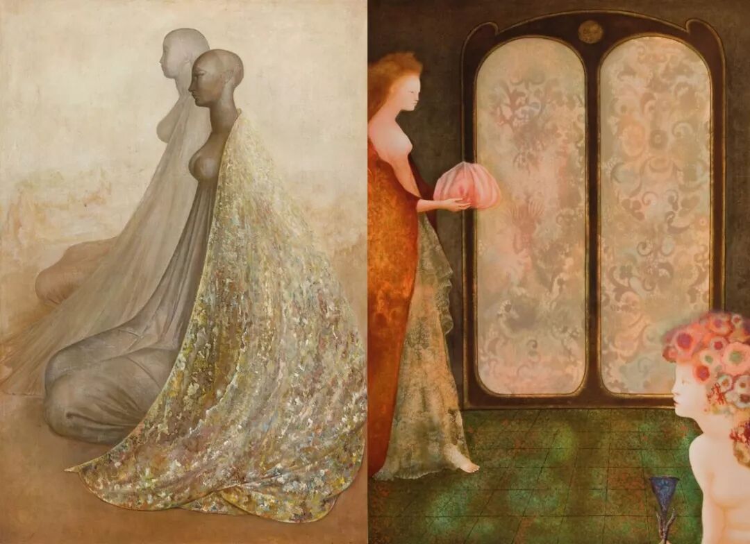 同时,以薄纱当衣,将女性的身体似遮非遮地隐匿于其中,亦是 Leonor Fini 所惯用的艺术手法。▼