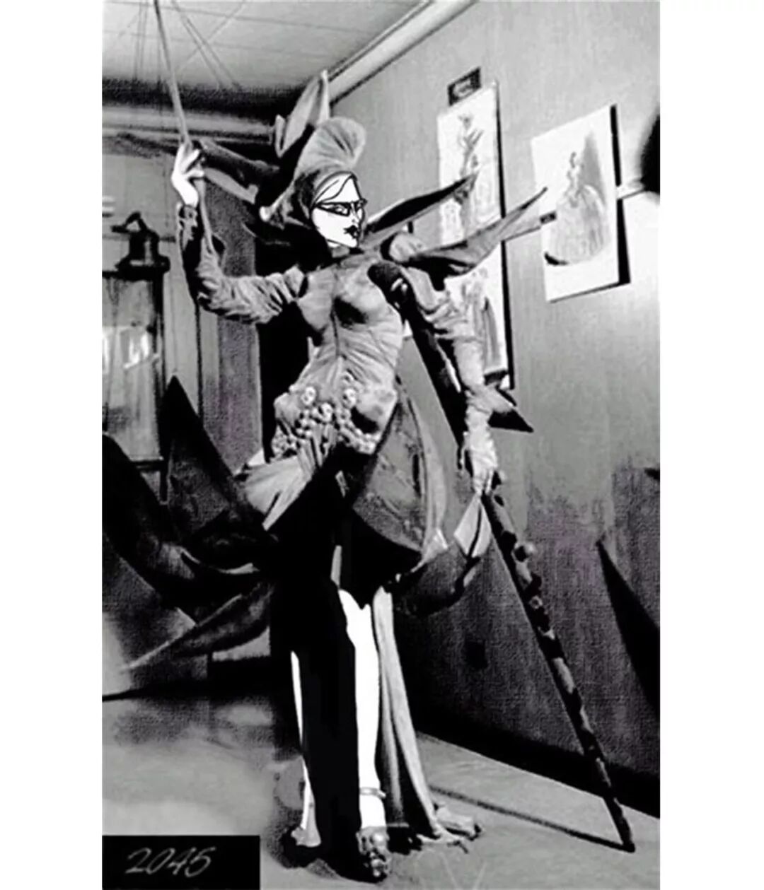 尤其是 Salvador Dali,早在 Christian Dior 先生健在时,就曾多次他擦出火花,甚至两人还共同创作过一件 “2045年时装“。▼
