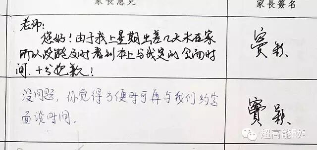 童童在学校的联络簿几乎都是姑姑和奶奶签字