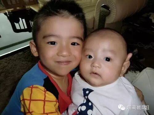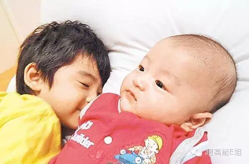 很多二胎家庭的大宝年幼时难免会吃弟弟妹妹的醋,但4岁的Lucas已经知道帮妈妈托住弟弟的小脚丫,一脸关心。