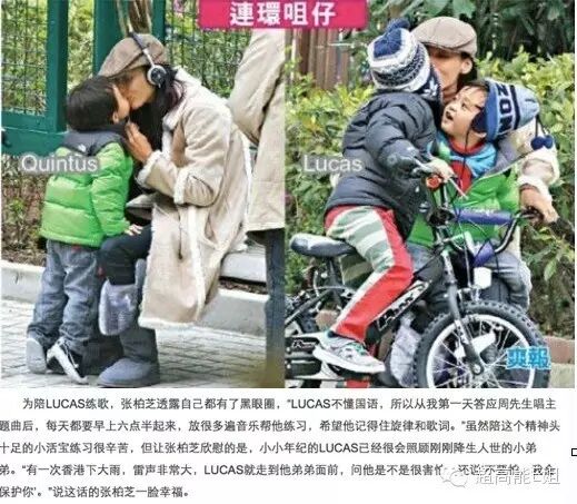 Lucas兄弟一出生就比其他孩子经历更多风浪,大多数街拍照片都有同样的主题——“爸爸去哪儿”;但兄弟俩懂事、贴心,如小铠甲一般保护着妈妈,张柏芝在节目中说“很感激上天让我拥有两个这么好的儿子”。