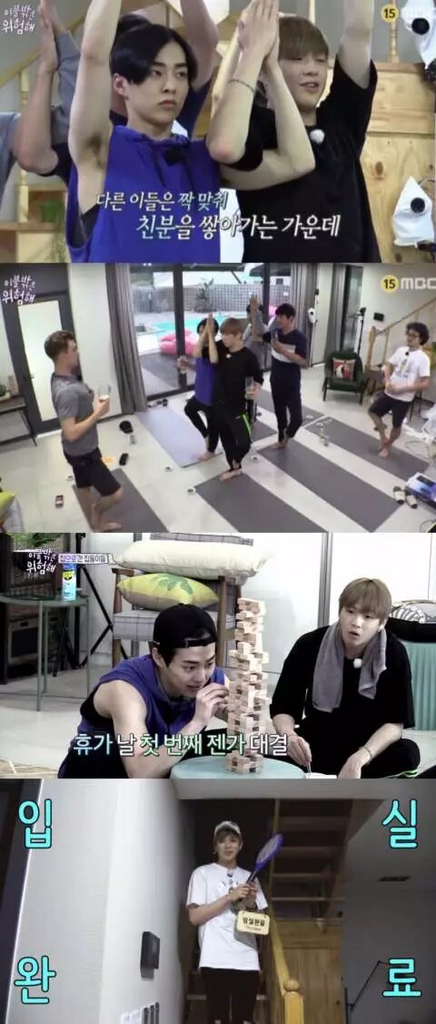 昨天的节目里 KangNam 带来德国朋友教大家啤酒瑜伽, XIUMIN 挑战叠叠乐屡屡失败,还有姜丹尼尔手持电蚊拍变身 “网球少年” 、展现软糖和拉面的花样吃播, 都让人百看不厌啊~